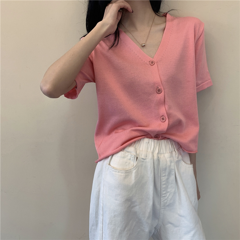 半小時前氣質v領薄款打底針織衫,2020夏季新款女裝短款開衫上衣 - 【買一送二】任選3件,僅需NT$1098