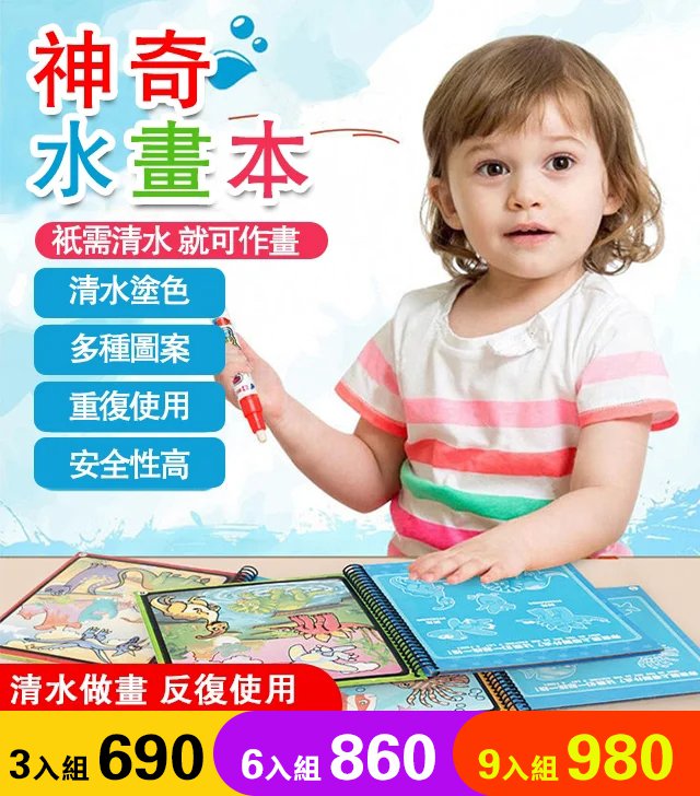 4分鐘前寶寶創意魔法塗鴉水畫本 - 三入組$690(每入230)